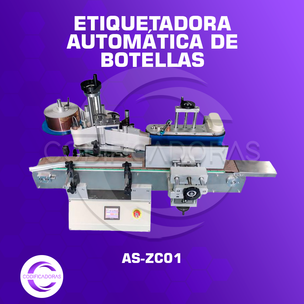 La AS-ZC01 es una etiquetadora de escritorio diseñada para botellas y envases cilíndricos. Compacta y fácil de operar, permite aplicar etiquetas adhesivas de forma precisa, siendo ideal para pequeñas producciones en industrias como alimentos, cosmética o laboratorio.
