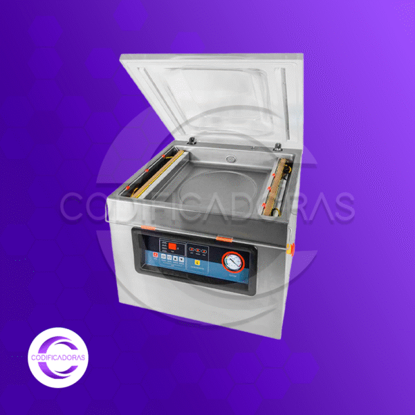Fabricada en acero inoxidable, es resistente, duradera y fácil de limpiar. Incorpora un panel de control digital con temporizador, manómetro y una tapa transparente que permite visualizar el proceso. Su capacidad de sellado de hasta 50 cm la hace perfecta para aplicaciones comerciales e industriales.
